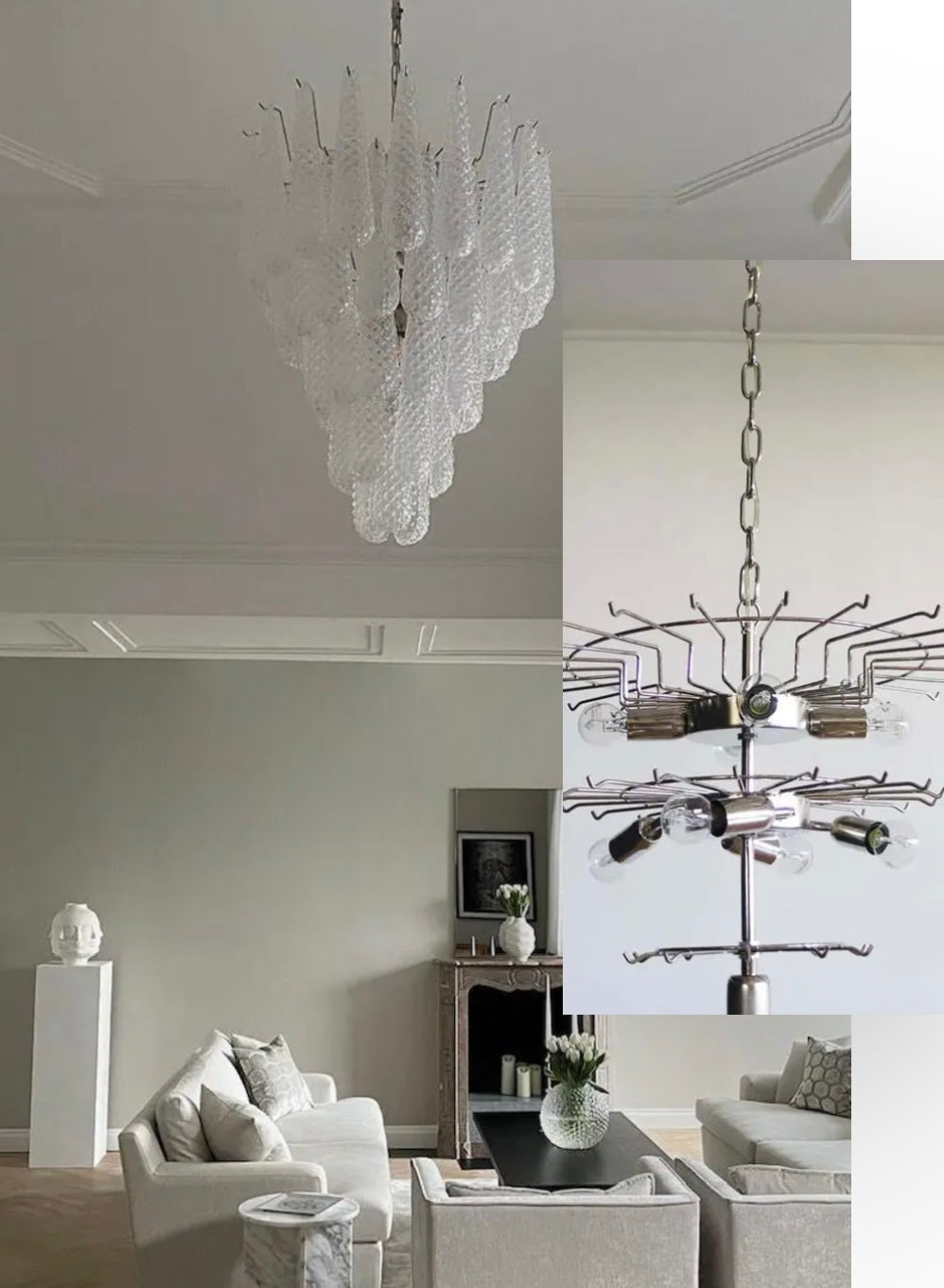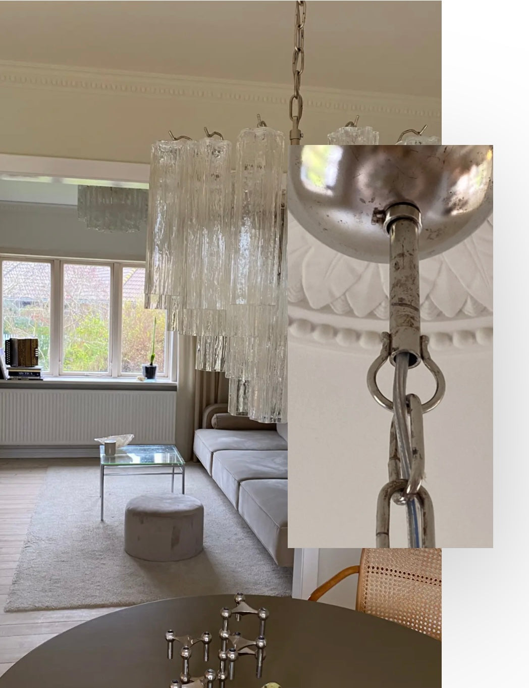 Krom patinert stål er standardrammen på de fleste av våre lysekroner. Denne rammen har naturlige aldringsmerker/patina. Gir en vintage-følelse som passer til både moderne og tradisjonelt interiør.